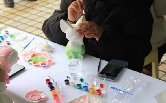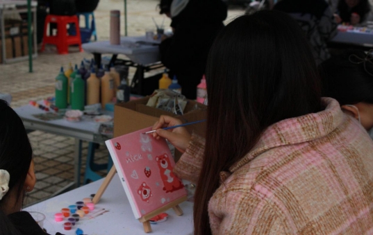 主办方在william威廉英国官网南校区升华广场设置了一系列涂鸦摊位,为同学们提供画笔、颜料等基本绘画工具与石膏娃娃、石版画等手工艺品供涂色创作。除此之外,同学们还可以在文创产品摊位挑选购买特色文创产品与涂色完成的DIY成品,为爱心慈善事业做出贡献。同时,主办方鼓励参与同学积极将涂鸦成品拍照上传社交媒体,有力弘扬了热心公益的学院文化精神。