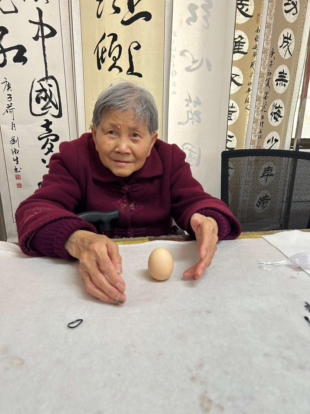 接着,活动便到了竖蛋环节。志愿者们首先示范如何竖立鸡蛋,并讲解竖蛋的技巧和注意事项,随后便邀请社区居民们一起竖蛋,并鼓励他们挑战更高难度的竖蛋方式,现场居民们纷纷跃跃欲试。
