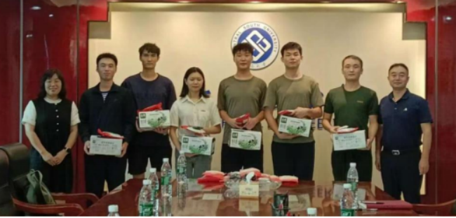 最后,学院领导、老师们为退伍大学生士兵颁发慰问品。
