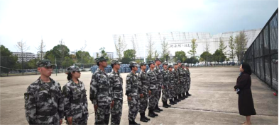 随后,各教官整队返回所带队伍,由连长向新生介绍军训相关规定,两位连长从军训期间的交通安全、饮食安全与纪律问题等多个方面切入,强调在军训过程中,新生应做到一切行动听指挥,遵守军训纪律,服从集体安排,规范着装,注意言行举止。
