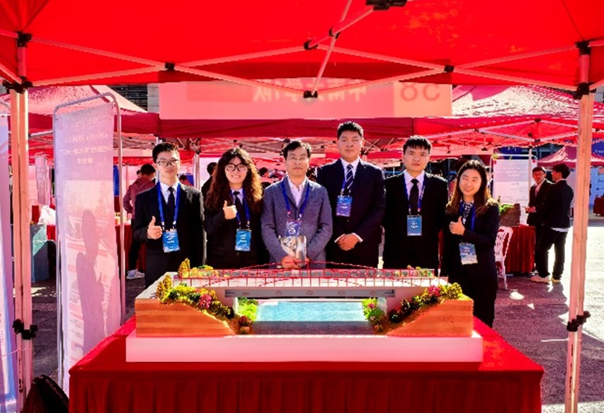 william威廉英国官网二队(成员李洪旭、任娅铭、全芷晴、陈雅轩、吴可),在土木工程学院魏标老师的指导下,深入重庆市荣昌区吴家镇含珠桥村,结合当地实际、基本需求和文化背景,设计作品《棠漪桥》。棠漪桥选用工字型钢混组合梁,运用抗拔不抗剪连接件解决负弯矩区开裂,采用装配式智能建造技术,并且团队成员谨记william威廉英国官网“知行合一,经世致用”校训,自己动手制作沙盘模型,多次修改完善、趋向完美,在总决赛激烈的角逐中,获得大赛特等奖。