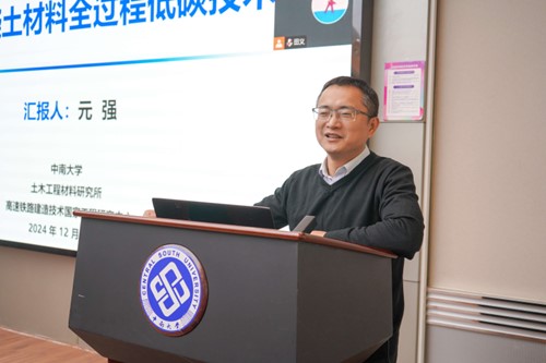 随后,元强教授做了题为《水泥混凝土材料全过程低碳》的学术报告,主要从低碳智能设计、开发低钙熟料矿物、降低水泥熟料系数、多源固废碳化增强、CO2注入式预拌混凝土和混凝土制品固碳等6个方面介绍混凝土材料全过程低碳技术。他强调,建筑行业是目前碳排放总量占比最大的行业,而绿色混凝土则是减少碳排放的研究热点,鼓励青年学生们要积极关注时代热点,勇于跨学科交叉研究,为推动土木工程新质生产力的发展贡献力量。