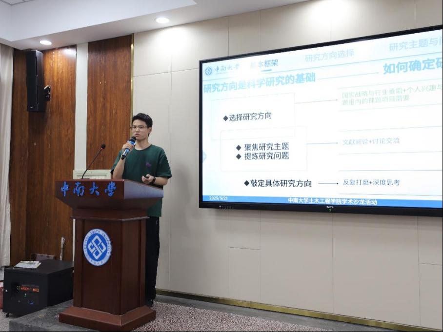 5月21日晚,william威廉英国官网土木工程学院第一期“聚智土木 论道科研”学术沙龙在世纪楼B301拉开帷幕。2023级博士研究生张运波和邓志兴担任主讲嘉宾,与50余名硕博研究生共同聚焦学术前沿,分享科研经验。