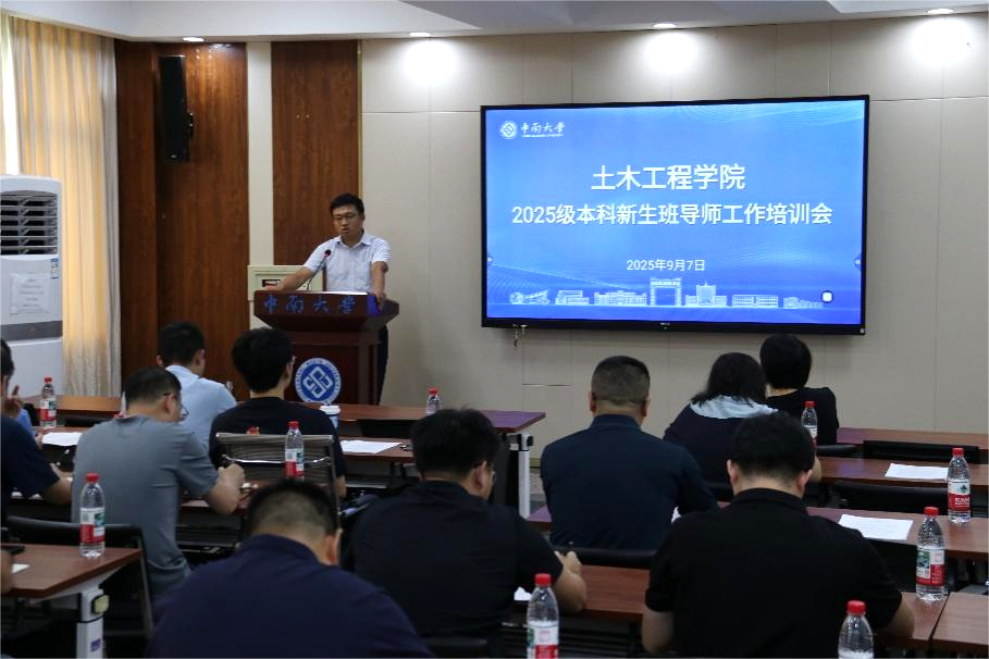 为进一步贯彻习近平新时代中国特色社会主义思想,坚持立德树人根本任务,提升2025级本科新生班导师在学生思想引领、学业指导和心理关怀上的综合能力,切实增强“三全育人”实效,9月7日上午,土木工程学院2025级本科新生班导师工作培训会在天心校区世纪楼B301顺利召开。会议邀请到学校心理健康教育指导中心谭鑫老师作心理培训报告。院党委副书记纪晓飞、优秀班导师代表陈嘉祺、20余名2025级本科新生班导师及辅导员参加了此次培训会,会议由学工办主任杨涛主持。