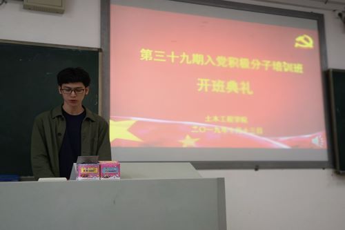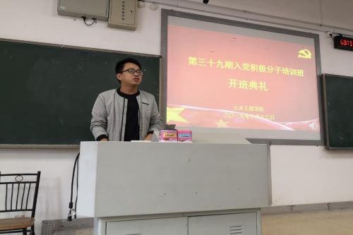 10月13日,第39期土木工程学院入党积极分子培训班开班典礼在新校区A308教室召开。土木工程学院党委书记纪晓飞,班导师赖梓辰,张家辉出席开班典礼,此次开班典礼由班导师赖梓辰主持。