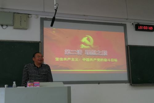 本次党课主题是:“坚信共产主义,中国共产党的奋斗目标”。那么什么是共产主义?唐建华教授给出的答案是:不同历史时期有不同的回答和期望。例如我们可以从日常生活中“三大件”的历史变迁,看共产主义在人们心中的美好:革命战争年代,共产主义是人人有衣穿、有饭吃、打倒了地主老财的社会;上世纪五十年代,共产主义是家家有“单车”、“手表”、“缝纫机”;二十世纪八十年代,共产主义是家有“冰箱”、“彩电”、“洗衣机”;如今共产主义是“车子”、“房子”、“出国游”。