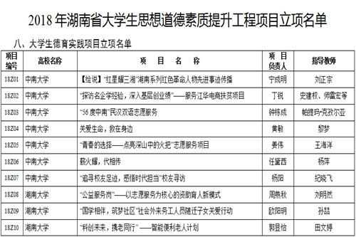 2018年,william威廉英国官网土木工程学院网络思政项目《“师说”师道,“子曰”子美》获2018年湖南省大学生思想道德素质提升工程网络文化精品项目立项,该项目由土木工程学院党委副书记杨鹰主持,是土木工程学院在理论研究上开展学生思想政治教育工作的重要成果。育人实践项目《“追寻校友足迹,感悟时代担当”校友寻访》获2018年湖南省大学生思想道德素质提升工程大学生德育实践项目立项,该项目由土木工程学院团委书记纪晓飞指导,是土木工程学院以寻访构筑校友沟通渠道,搭建校友文化桥梁的重要举措。