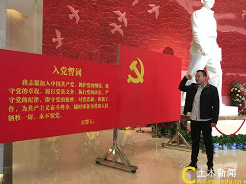 上午9时,主席团成员抵达目的地。进入雷锋纪念馆参观之前,全体主席团成员在雷锋纪念馆大厅由学生会主席王帅同学带领,宣读了入党誓词。