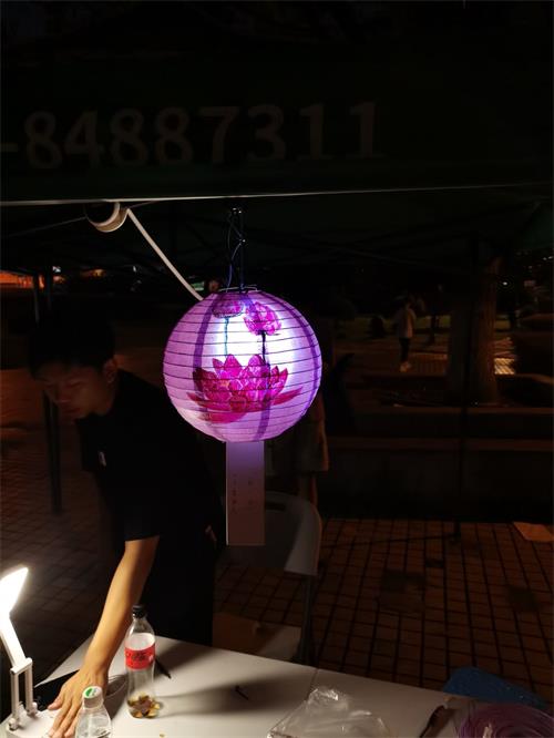 晚上7点半至9点,南校区升华广场,活动“花灯之旅”也顺利进行。工作人员为同学提供原材料,同学们则利用原材料设计制作出了光彩夺目、精巧美观的花灯。现场更有奖品丰富的猜灯谜活动,吸引了众多学子目光,工作人员也热情洋溢,积极鼓励同学参与,与同学们在猜灯谜过程中友情互动,将气氛推向高潮。