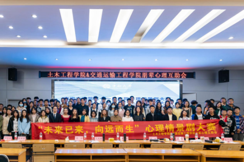 2021年10月16日下午两点,由土木工程学院与交通运输工程学院的朋辈心理互助会共同举办的“未来已来,向远而生”心理情景剧院赛在校本部立言厅正式开始。