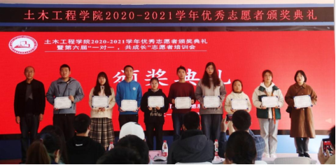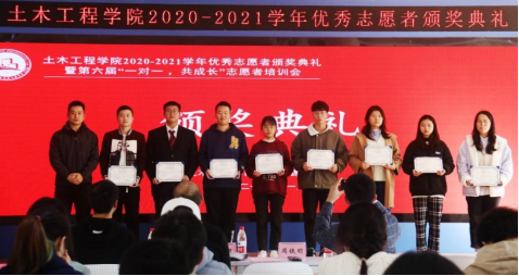为践行“奉献、友爱、互助、进步”的志愿精神,树立志愿典型模范,发挥示范带动、榜样引领的积极作用,2021年11月24日,土木工程学院2020-2021学年优秀志愿者颁奖典礼暨第六届“一对一,共成长”志愿者(以下简称一对一志愿者)培训会于铁道校区立志厅顺利召开。本次活动共有20名院级优秀志愿者、70名第六届一对一志愿者代表参会,并邀请学院党委副书记杨鹰、学院团委书记周铁明、本科2020级辅导员李海鑫和本科2021级辅导员姜博恩作为嘉宾出席。