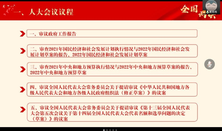 首先,针对第十三届全国人民代表大会第五次会议和中国人民政治协商会议第十三届全国委员会第五次会议的召开,我们回顾了国家2021年的工作,体会到了我国在2021年应对的各种挑战以及获得的诸多成绩,并就此观看了微视频“为什么全世界都在看中国”,感受到了2021年的中国“闪耀全球显大国风范,名扬世界彰盛世文明”。其次,我们了解了党和国家在2022年的目标,经济社会发展总体要求和政策取向,仔细阅读了2022年政府工作的各项任务,共同体会2022全国两会精神如何影响当代青年。此外,针对当前疫情形势,支部通过几个微视频学习了党和国家对于疫情采取的防范措施统,体会了我党制度的优越性,体现出中国的防疫政策经受住了考验。