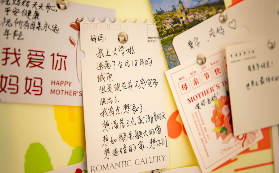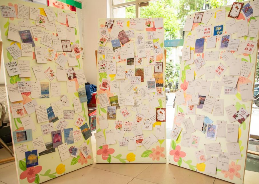 活动引起热烈反响,越来越多的同学在展板前驻足沉思,拿起笔认真书写。展板逐渐被各式明信片覆盖,塞不下的信箱里也露出明信片的一角……倘若每一句话都代表着对母亲的一份爱,那这爱一定像明信片一样色彩分明,既如黑白般对比清晰,又如油画美景般瑰丽动人。