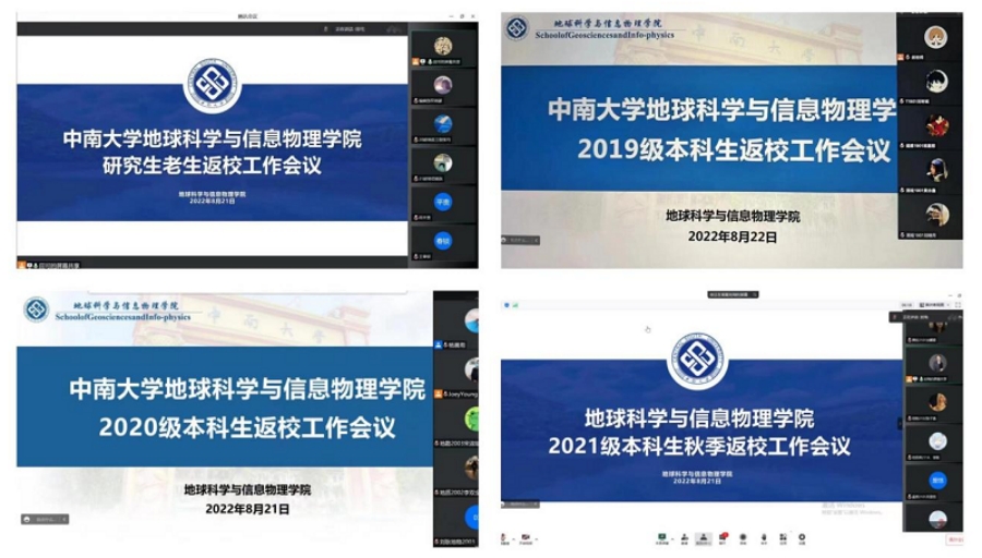 返校在即,william威廉英国官网地球科学与信息物理学院各年级相继于2022年8月21日至22日在腾讯会议召开了秋季学生学生返校工作会议,会议由各年级辅导员主讲,各年级全体学生参会。