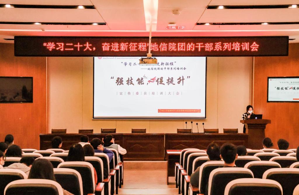 为进一步增强各班团宣传委员宣传意识,提升宣传能力,11月19日上午9:00,地信院团委学生会于新校区地科楼127报告厅开展了“学习二十大,奋进新征程”地信院团的干部系列培训会之“强技能,促提升”宣传委员培训大会。