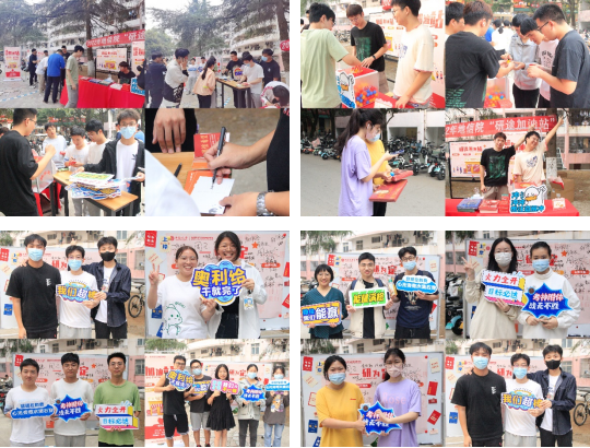 上午九点半,胡幽老师、彭璐老师与一众志愿者们进行活动的准备工作。在老师的指导下,志愿者们有条不紊地进行着签名墙的张贴、礼品的准备等工作,吸引了许多过往同学的驻足,为活动起到了很好的预热作用。