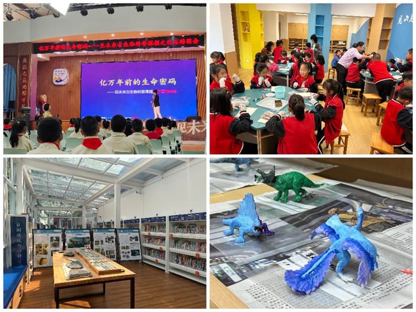 2017年国际古生物协会(IPA)向全球古生物科研科普机构发起号召,将每年10月11日定为“国际化石日”,并通过举办丰富多彩的纪念活动,开展古生物化石科普宣传。本次活动中,地信院王文卉副教授针对本次科普活动的主题,做了题为“亿万年前的生命密码”的科普讲座,通过对化石的内涵、形成过程等科学知识的介绍,加强了青少年对化石的了解和认识,提升了他们保护珍贵化石资源的意识。除了传统的科普讲座、科普视屏和现场讲解等活动,本次科普活动的志愿者们还根据青少年认知的特点,创新出形式多样的“化石游园会”科普互动活动。开展了包含“化石互动发掘”、“化石模型彩绘”和收集“化石火漆印章”等丰富多彩的科普活动,达到了寓教于乐的目的。这种形式新颖的“化石游园会”激发了小学生们对古生物科普知识学习的兴趣和热情。