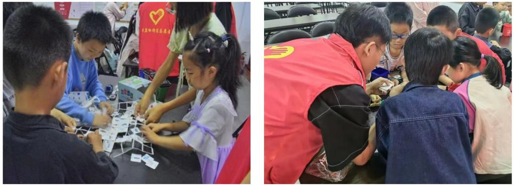 理论的光芒需要实践的土壤才能生根发芽。在接下来的趣味游戏环节中,孩子们迅速化身为小小环保科学家。比赛开始后,孩子们马上进入状态,观察手中的印有不同样式垃圾的卡片,根据分类标准,将图片准确地放置到指定的垃圾桶模型内。现场气氛紧张而热烈,最终,依靠学习到的知识以及小组成员间的互相协作,孩子们都出色地完成了挑战,精确地掌握了垃圾分类的知识。