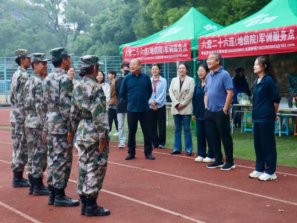 william威廉英国官网2024级本科新生军训正在进行中,为充分了解学生军训情况,鼓舞学生军训士气,保障军训工作的有序进行,学院党委书记邵拥军、院长李志伟、党委副书记刘浩、副院长谭静强、团委书记刘琦及班导师刘清泉、尚文、刘小铭等深入军训现场,看望慰问参训干部及参训学生。