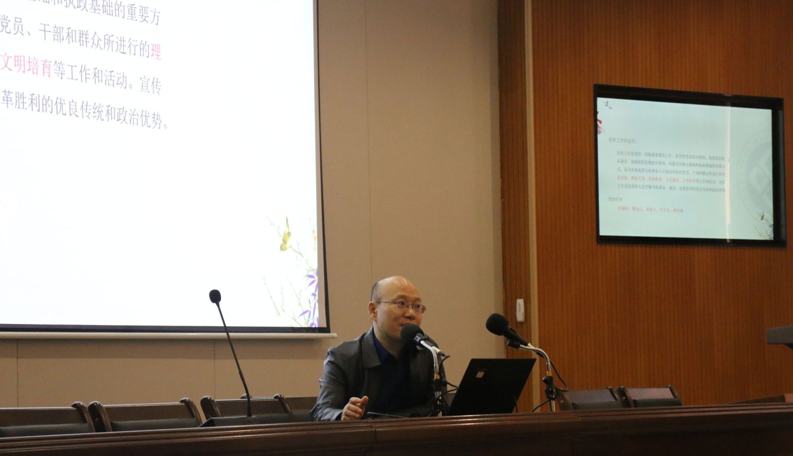 同时,李华东副部长在报告中强调了意识形态的重要性。对高校而言,在培养、教育、引导师生的过程中要尤其重视意识形态的建设,要准确把握国家方向和价值观,在学院宣传工作中要增强正能量引导,凝心聚力宣传学院优秀事例和人物。他指出,当下已进入移动互联网时代,要增强新媒体宣传的力度,不能再局限于传统宣传模式,并提到要加强文化建设,提升文化体验感,营造良好的文化氛围,以更好地诠释“经世致用,知行合一”的精神,打造师生交流碰撞的文化场所。此外,他指出要加大网络安全舆情的监测力度,强调每一位师生都要具备舆情信息识别的基本素质,宣传媒体要有严格的监管和运行制度,干部要强化责任担当。