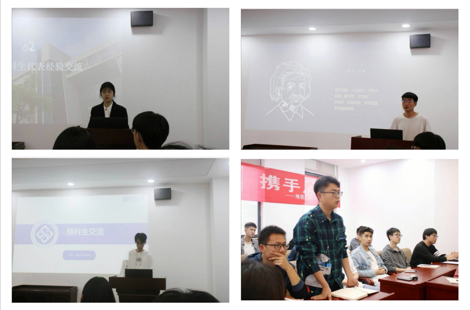 会议伊始,胡幽老师从学校师资力量、学科特色与方向等方面对学校及学院进行了详细地介绍。随后由各专业优秀预科生代表进行经验交流,首先由测绘1903班刘洢璇同学进行经验分享,刘洢璇同学从心理路程、学习情况、校园生活三方面分享了她的预科情况。刘洢璇谈及从预科到本科的转变,应从心态接受自己、了解自己、行动严格要求自己三方面进行。接着地质1901班李祉浩同学从介绍地质专业及预科本科的区别两方面进行分享,他向大家展示了地质专业未来的就业情况,并建议同学们积极参加学生工作、平衡好工作与学习。最后由资勘2009班王泽立同学进行经验分享,他则从个人经历和大学建议两方面阐述,分别就学习、工作和生活提出自己建议。