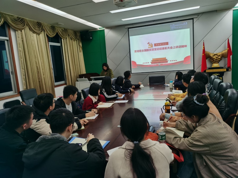 会议开始,全体同志首先采取集中学习、研讨交流的办法,由叶丁绮,陈相如,尚傲群,董龄文,孙庚、李成强六位同志分别就习总书记在全国脱贫攻坚总结表彰大会上的讲话、党史教育动员大会上的讲话进行了内容解读,并共同学习了《论中国共产党历史》的部分内容。其后,由谭骁勇,韩晶莎,王军杰和陈美华四位同志介绍中国共产党发展历史中杰出的英雄人物,讲解杰出党员同志为人民服务、艰苦奋斗、无私奉献的感人事迹。通过本次学习,加深了各位同志对我党发展壮大历史的了解,提高了各位同志的政治理论水平,夯实了各位同志的思想基础。