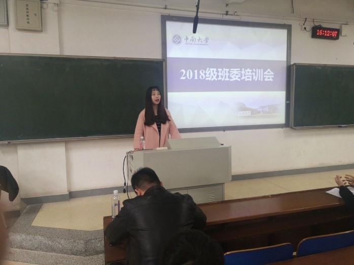 随后由何可沁老师开展班委培训会。她首先向大家点明了不同班委的职责和要求,其中包括班长应担负起班级总体工作、做好师生纽带,团支书应做好团支部建设和学生思想政治工作,寝室长应做好宿舍安全防范工作,带头创建宿舍良好氛围等等。紧接着何可沁老师结合班委成员的不同分工,分析了它们所组成的班委会职能,如制定班级计划、完善班级制度、加强班风建设等等。此外她也就如何做好班委会工作向同学们分享了自身经验并提出了几点要求,包括要优化工作方法、处理好工作学习关系,同时保持敏感度,及时发现反馈同学异常情况。