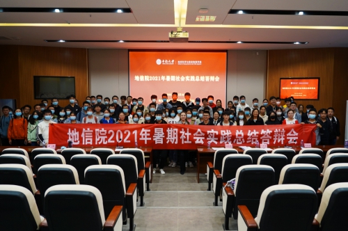 活动最后,团歌昂扬奏起,所有人员合影留念。至此,地信院2021年暑期社会实践总结答辩会圆满结束。经过这一次的暑期社会实践总结答辩会,同学们更深刻地感受到了暑期社会实践活动的意义,学习到先进的实践经验,并认识到自身存在的不足和调整方向。相信他们一定会在实践中继续完善自身,与时俱进,深入社会,深入基层,服务社会,服务群众,将爱国行报国志切实融入强国伟业中!