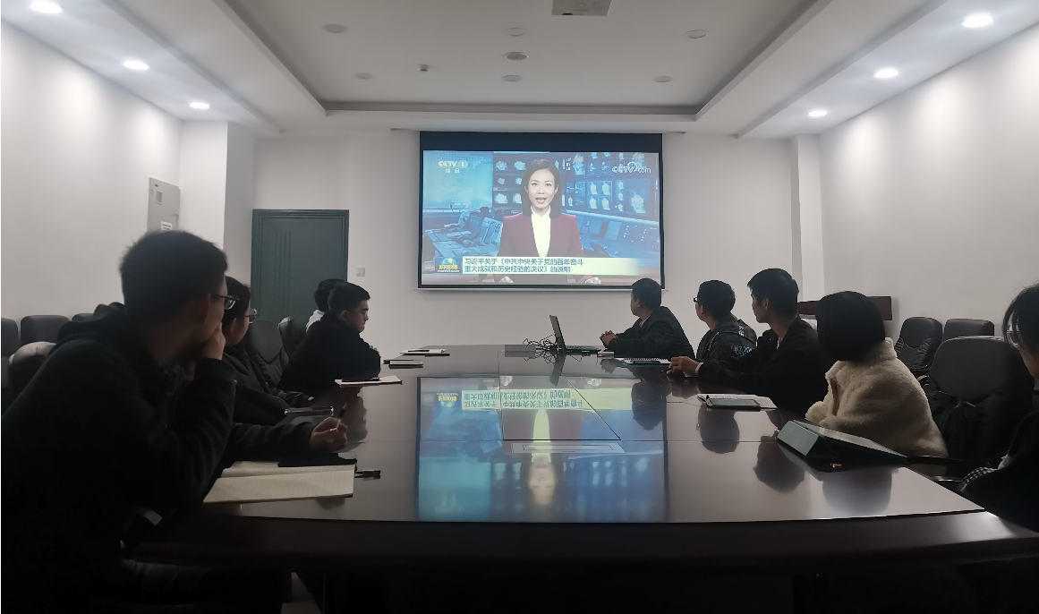 会议开始,支部全体同志共同收看新闻联播——习近平总书记关于《中共中央关于党的百年奋斗重大成就和历史经验的决议》的说明。其中,新闻里着重介绍习近平总书记聚焦党的百年奋斗重大成就和历史经验、抓住中国特色社会主义新时代这个重点,对党历史上的重大事件、重要会议、重要人物进行总结和评价。