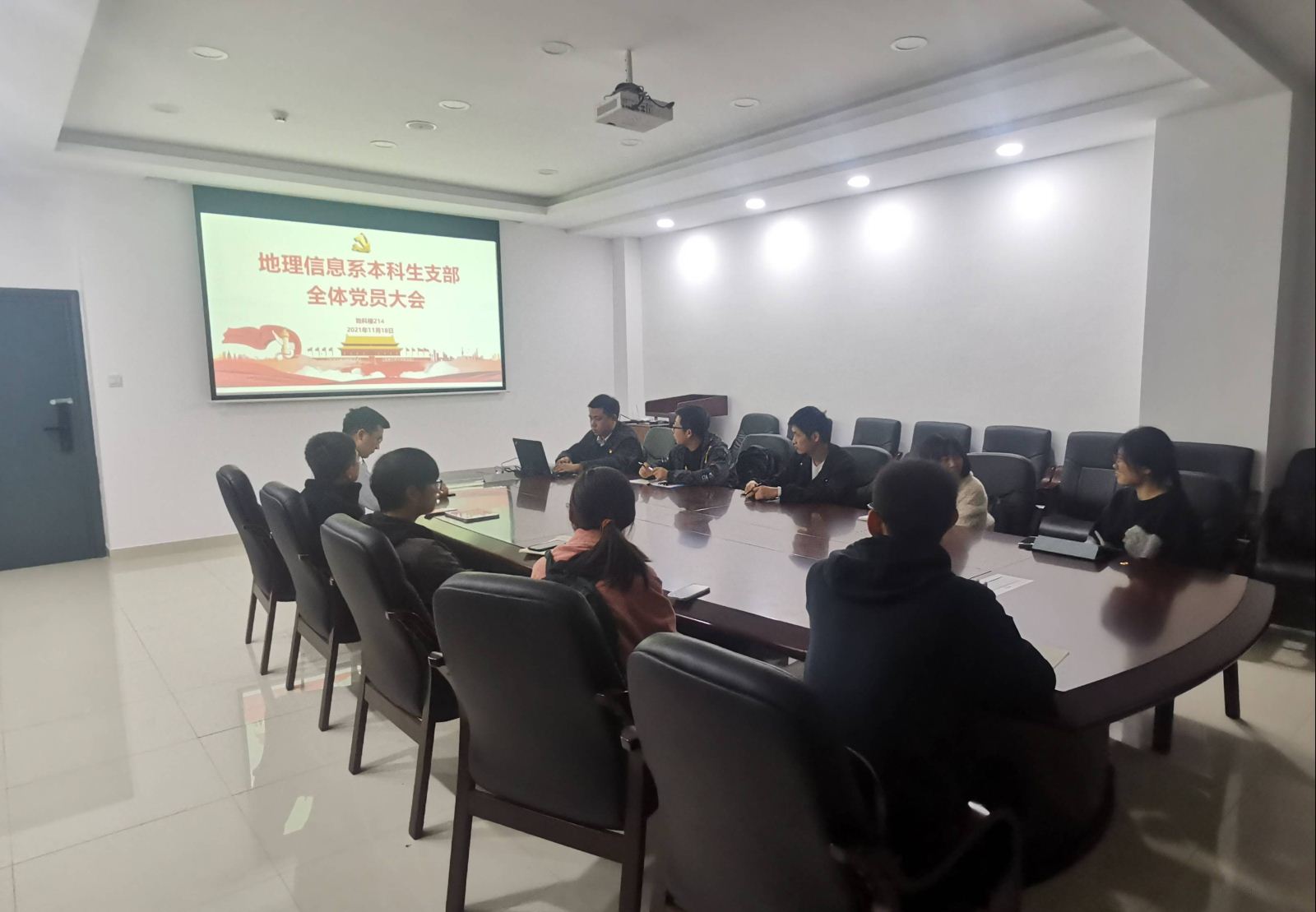 11月18日晚21:00,地理信息系本科生支部于新校区地科楼214会议室举办了地理信息系本科生支部学习十九届六中全会精神大会。本次会议由强俊同志主持,支部全体同志出席本次会议。
