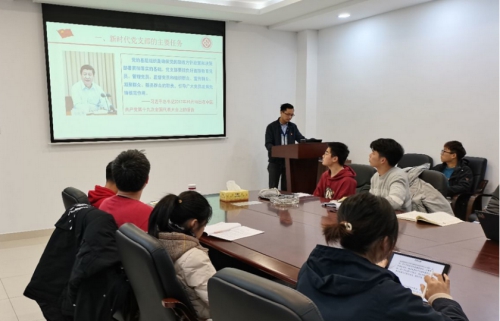 会议第二项,支部书记杨通田带领支部全体同志学习了《中国共产党基层组织选举工作条例》。支部同志认真学习了高校党支部工作内容、党支部主题党日活动等内容,学习过程中支部书记杨通田强调支部全体同志要了解新时代高效党支部的任务,为建设更好党支部做贡献,扎实工作,埋头苦干,在新时代新征程上不断展现新气象新作为。