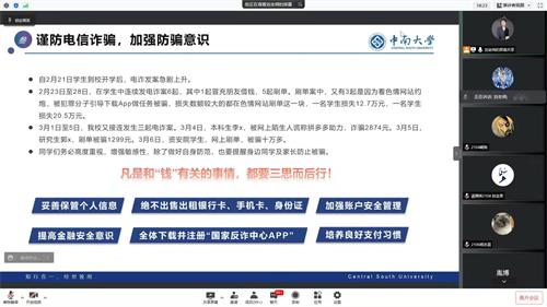会中,刘老师就电信诈骗预防工作做了重点强调,要求每一名同学都必须下载注册“国家反诈中心APP”,提醒大家要妥善保管好个人信息,加强账户安全管理,培养良好的支付习惯,希望每位同学都要提高防范意识,学会自我保护。