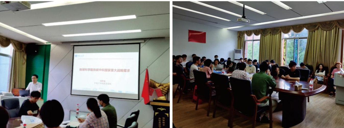 实现碳达峰碳中和,是以习近平同志为核心的党中央统筹两个大局作出的重大战略决策,事关中华民族永续发展和构建人类命运共同体,是我国在新发展阶段推动高质量发展的必由之路。深刻学习和领会习近平总书记一系列重要讲话精神,“正确认识和把握碳达峰碳中和”这一重大理论和实践问题,把党中央的决策部署落到实处,扎扎实实学习“双碳”战略计划是新时代地球科学学子的责任与担当。2022年5月30日上午,地信院地质资源系硕士党支部于校本部地学楼336会议室开展了五月份主题党课学习活动。