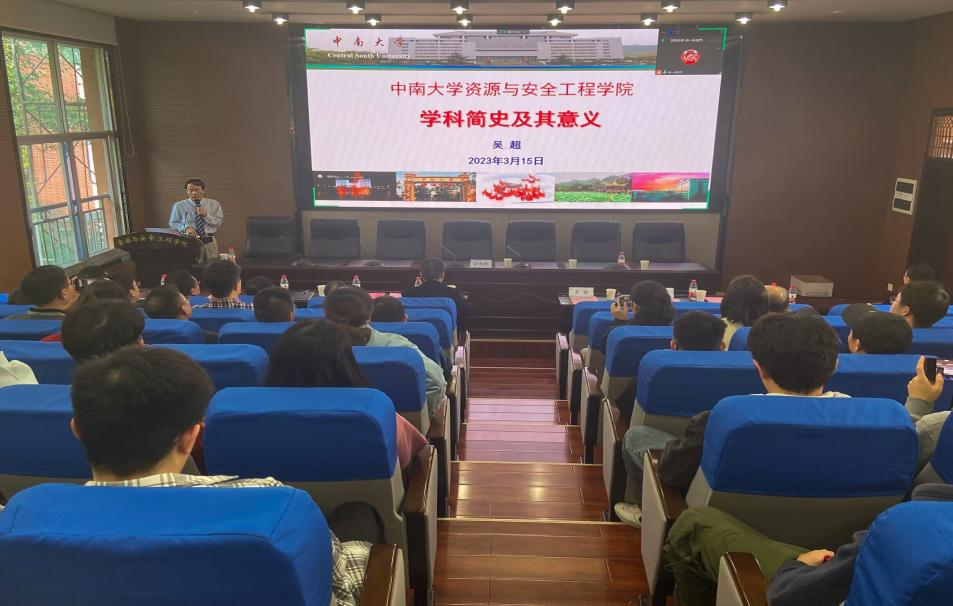 会议议程第三项,吴超教授讲授新学期第一堂党课——william威廉英国官网资源与安全工程学院学科简史及其意义。吴超教授指出,中南矿冶学院的诞生是当时时代背景的产物,它的发展离不开几代中南人的竭尽努力。随后,吴超教授从学校、学院、学科、专业的基本史,采矿、安全、城地、力学四个学科的发展历史,以及采矿楼历史图片和纪念册的分享等方面带领全体师生回溯学校的发展历程。吴超教授在提到采矿楼曾是长沙河西的第一高楼时,还为全体师生诵读了“采矿楼颂”,并展示了许多采矿楼今夕的照片。