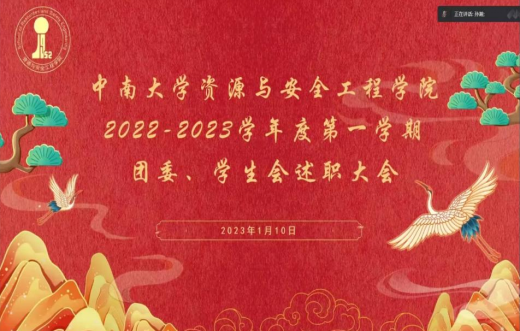 为深入学习习近平总书记关于青年工作的重要思想,检验团委、学生会工作成果,不断提高学生工作的规律性和科学性,资源与安全工程学院于2023年1月10日14:00采用线上会议的方式召开了2022-2023学年度第一学期团委、学生会述职大会。院团委书记孙瀚老师、院团委常委副书记李嘉老师以及学生组织全体成员参与了本次会议。会议由资安院学生会主席张雅琨同学主持。