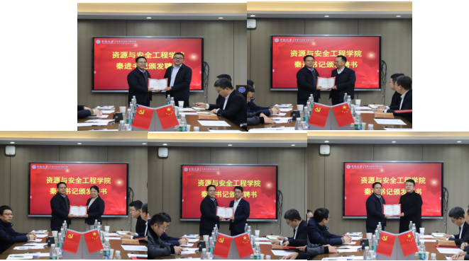会前,学院遴选聘请了一批大学生职业生涯规划导师,秦进书记逐一为各导师颁发聘书。此次担任大学生职业生涯规划导师的有:核工业井巷建设集团党委委员、董事、副总经理阮仁酉;五矿二十三冶矿业公司总经理助理陈纲;长沙矿山研究院人力资源部部长周友余;宏大爆破工程集团综合总监李方元;飞翼股份人力资源总监谢翔。