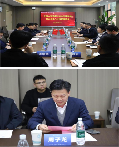 下午2:30,学院领导与企业嘉宾在采矿楼222会议室进行座谈。周子龙院长首先代表学院对各企业负责人来院交流选才表示热烈欢迎,他指出,过去校企双方在建立长效交流合作机制、学生实践研学机制、探索定向人才培养机制等多个方面取得了丰硕成果。下一步,学院将继续邀请企业深度参与校园招聘会、产学研项目合作,通过“矿业报国大讲堂”“灯塔领航”等品牌活动分享行业前沿动态与成长经验。同时推动实习实践基地共建,鼓励学生利用寒暑假深入企业一线锻炼,同步推进“订单式”人才培养项目,进一步在人才培养、科学研究、技术服务、成果转化等方面进行宽领域、多渠道、深层次的长期战略合作,构建产、学、研、用合作多赢的协同创新发展模式,助推双方高质量发展。