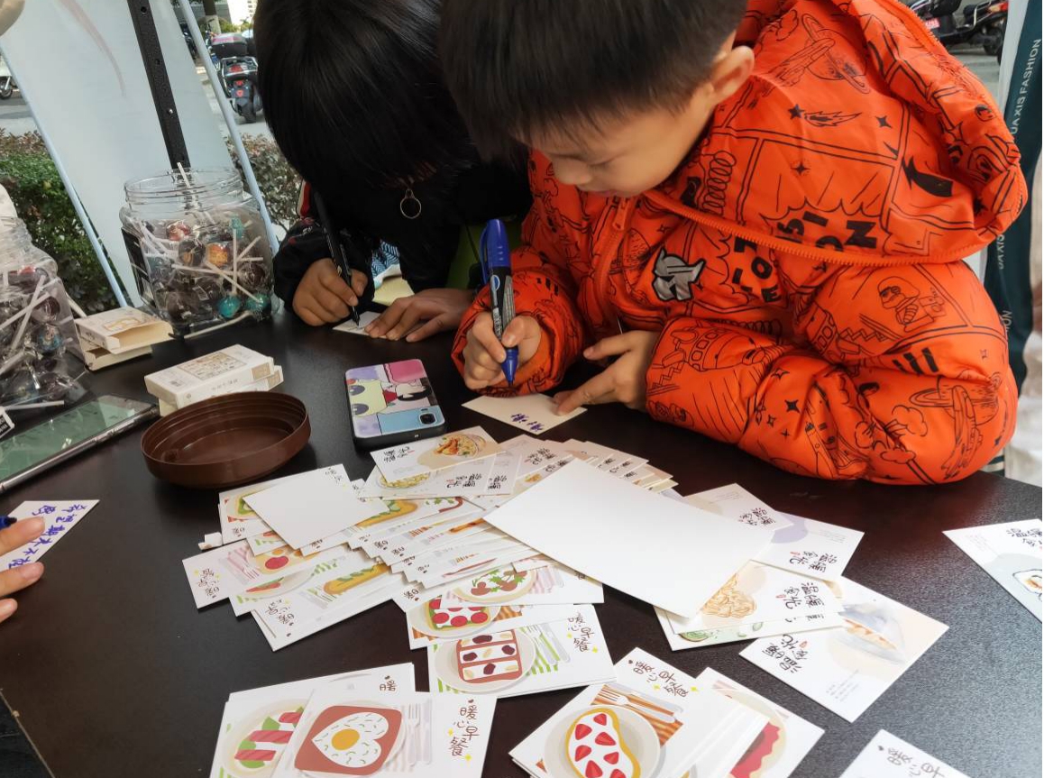 线下活动包括“感恩寄语”“合影留念”“游戏闯关”等三个环节。当天我们在升华广场支起摊位,摆放展板,并制作心愿箱子来放置各种可以为同学解决的小心愿。参与同学填写感恩寄语并贴于展板,我们从中抽取幸运参与者为他们解决心愿。当天我们还为大家发放了丝带,让他们与想感谢之人进行合影,同样我们随机抽取了心愿卡片,为他们完成心愿。同时我们还举行了感恩大作战游戏,邀请同学们为自己想要感谢的人赢取奖品,我们将奖品邮寄到他们想感谢之人的手中。