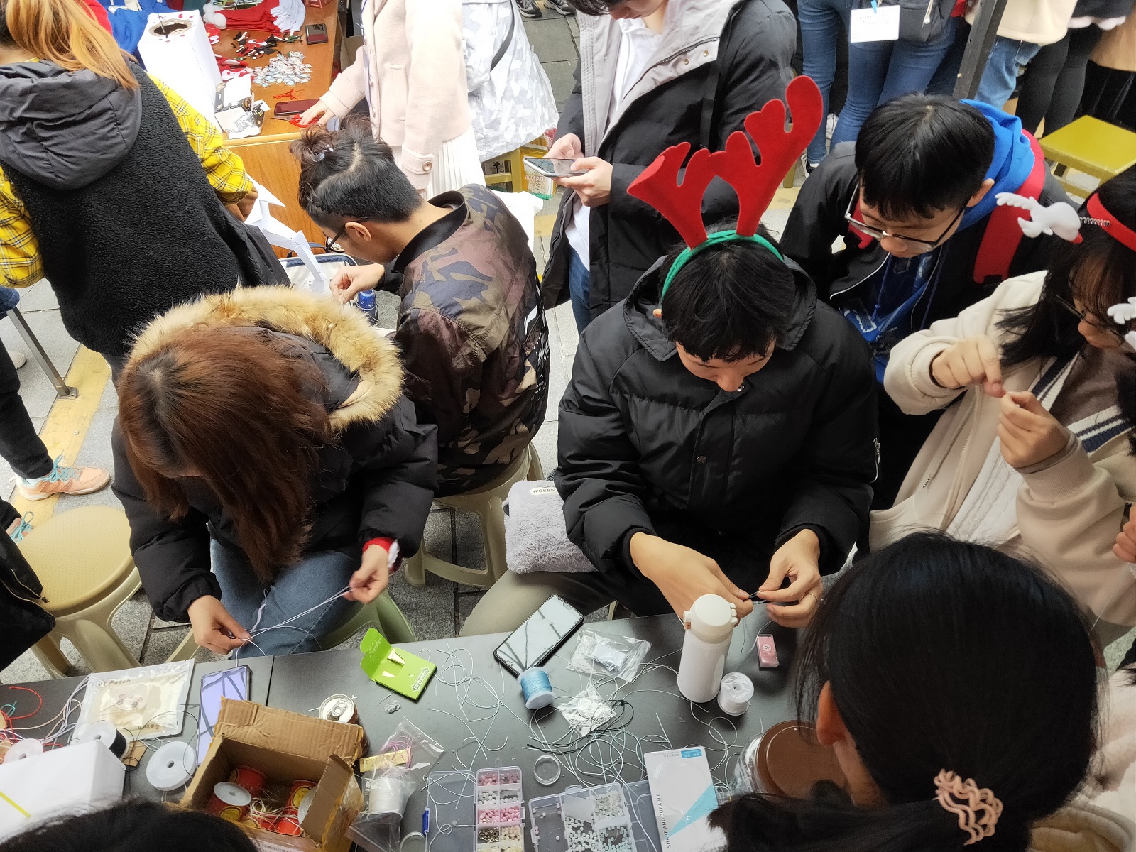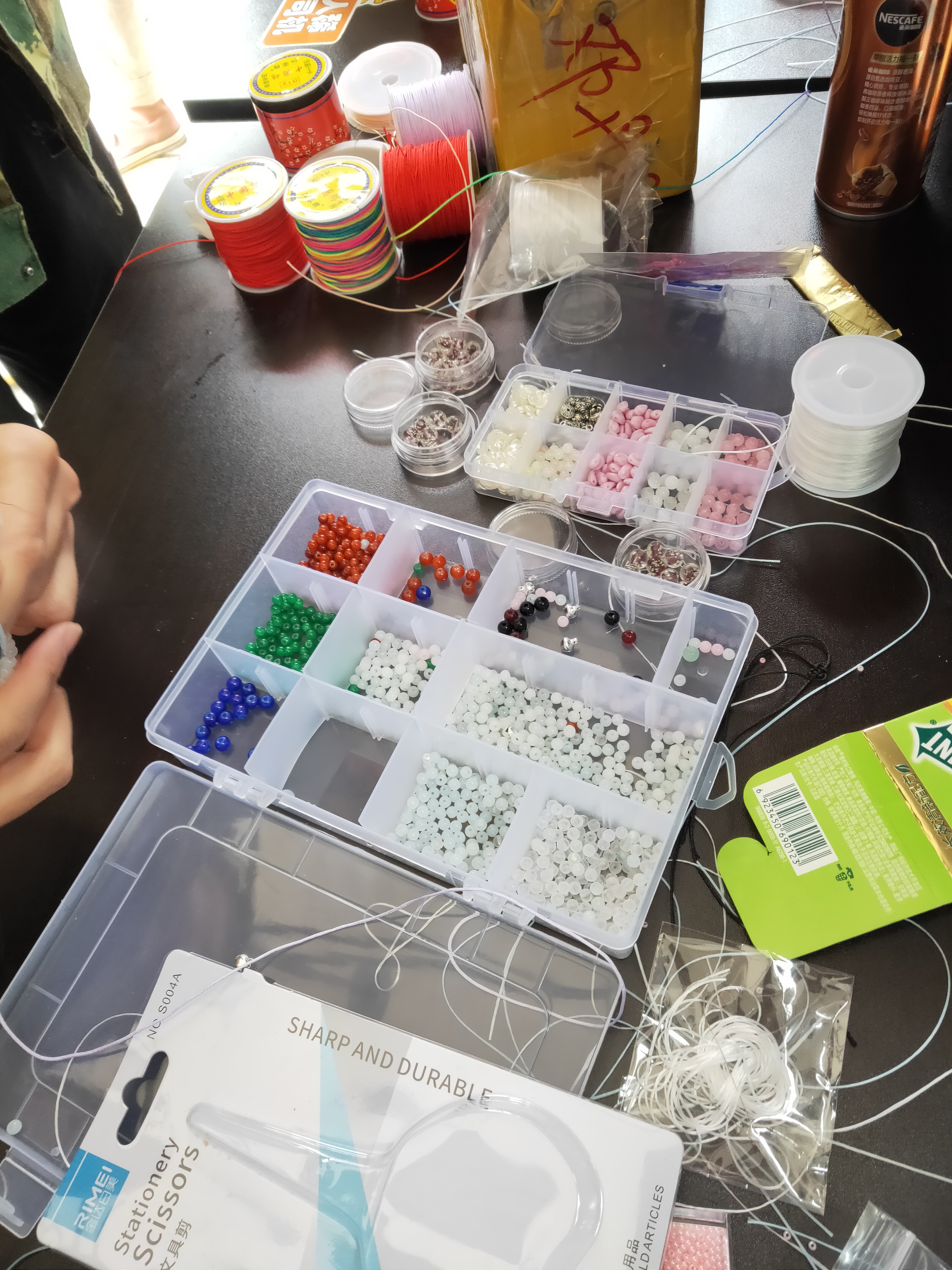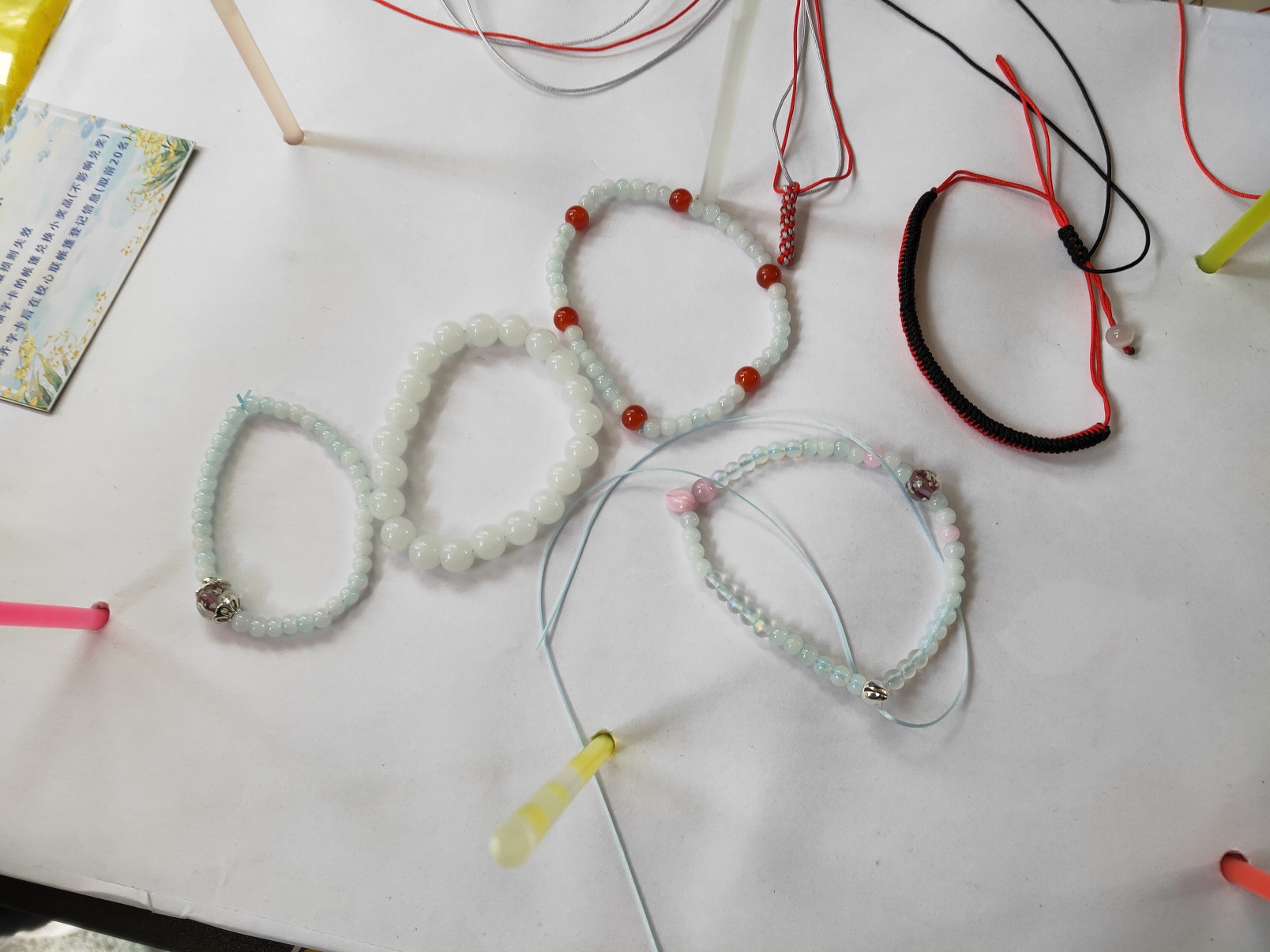 活动期间一直有工作人员在现场陪着大家,耐心指导同学们找到珠子排列的最佳方式、讲解手链的制作过程等。最终,参与游戏的同学们都成功的完成了属于自己的手链。同学们看着简单的珠线通过自己的双手成为一件艺术品,如获至宝,眼中流露出满满的成就感。