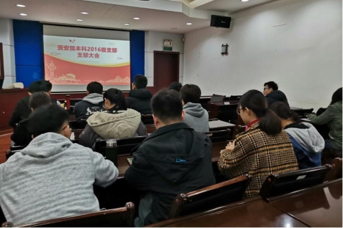 2019年3月14日晚7时,资安院本科2016级党支部于校本部采矿楼224举办两会精神学习交流会,党支部书记、本科2016级辅导员侯霄峰老师出席并主持学习交流活动。