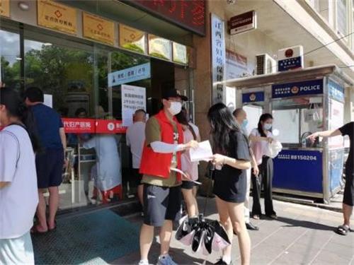 7月,在石泉村团委的组织下,“雁归报恩队”连续9天在南昌市新时代妇产医院及石泉村附近为居民提供疫苗接种的宣传和引导服务,累计服务超过3000人次。在此期间,实践队积极宣传动员居民提高防疫意识,嘱咐居民尽早接种新冠疫苗。对从中高风险地区返昌的居民,实践队通过电话收集信息,了解其最近旅居史,嘱咐他们严格进行居家隔离,并耐心告知其解除黄码的方式。大学生志愿者是社会志愿行动中的一支重要力量,在疫情防控常态化的背景下,实践团队成员积极工作在抗疫的一线,为疫情防控贡献着自己的力量。