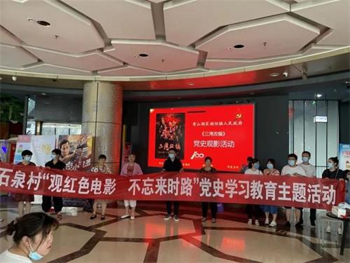 8月6日,为深入学习和贯彻落实习近平总书记关于“用党的历史教育党员、教育干部、教育群众尤其是教育青少年”的重要讲话精神,实践队协助团委组织石泉村村民观看党史电影《三湾改编》。