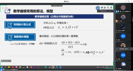 首先,我院19级硕士研究生赵云阁同学分享了自己的数学建模竞赛经验,并从数学建模的概念、重要赛事及类型、比赛内容及形式、常用算法及模型、所需技能及书目五个方面展开了详细的讲解。他通过一个具体的题目向大家展示了模型建立的过程,并鼓励同学们都能够勇敢地迈出建模的第一步从而突破自我实现超越。