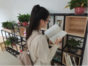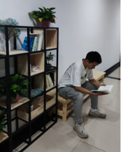 林明恪同学说布置完后这空旷的楼道变得温馨起来,自己在科研之余也能悠闲的坐在椅子上沉迷于书海之中享受读书带来的美好,不仅是喜欢这些绿植和书,更喜欢学院为我们着想丰富着我们学习生活中一点一滴的细节。