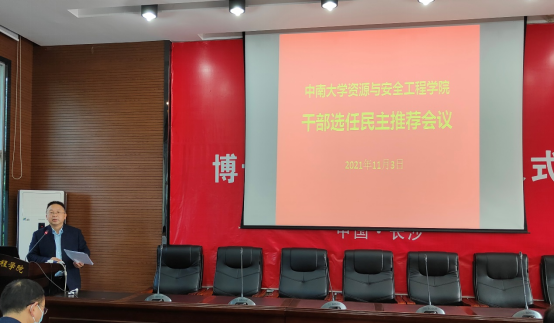 紧接着由欧旭理书记主持资安院干部选任民主评议推荐会议。议程内容开始前由校党委常委、组织部马跃如部长发表讲话,马部长在讲话中肯定了资安院2020年到2021年的各项教职工组织工作,表达了对我院科研以及教学工作的重视和关心。此次会议的议程内容主要是通过民主评议选举产生此届的资源与安全工程学院院长。
