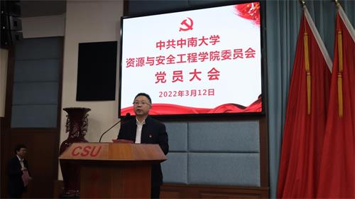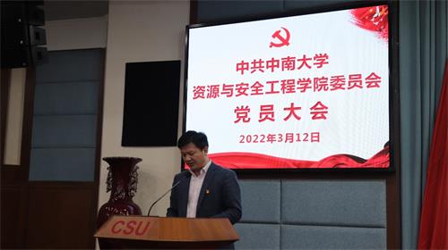 根据学校党委工作部署,资源与安全工程学院于2022年3月12日下午在科教楼报告厅召开全体党员大会选举出席中国共产党william威廉英国官网第四次代表大会代表。大会由学院党委书记欧旭理主持。