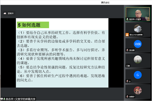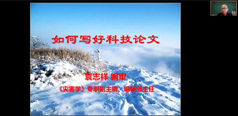 为进一步帮助研究生了解科技论文的文章结构,掌握科技论文撰写技巧,提高科技论文的写作水平,2022年4月5日晚上19:00《灾害学》杂志副主编、西北大学公共管理学院袁志祥教授应邀开展“如何写好科技论文”线上专题讲座,校内外共四百余名研究生参与此次讲座。