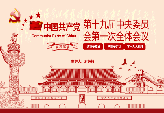会议上,团委副书记刘妍麟对十九届中央委员会第一次全体会议进行深刻学习解读,针对会议的背景、主要内容和十九大精神进行阐述。