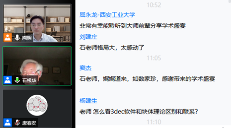 此次报告中,石先生带领大家重温了20世纪中后期国际数值方法蓬勃发展的浪潮,回顾中国人在数值方法发展与变革中的巨大贡献,分享众多鲜为人知的历史和趣事:有限元创始人Clough口中的东方学者冯康院士、Zienkiewicz的博士张佑启院士、挽救Zienkiewicz板单元的郑宏教授、提出高阶流形元的陈光齐教授、水科院张国新所长、开发RFPA的唐春安教授、Newmark方法的真正创始人董铁宝、还有长科院林绍忠、苏海东、张奇华等专家学者。