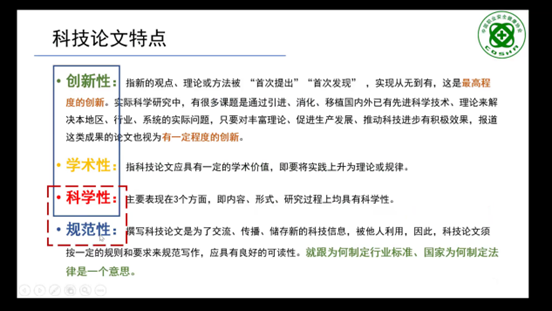 刘娇老师将理论方法与实际案例相结合,以独到的见解与认识,让同学们了解了科技论文的写作规范与方法。本次讲座不仅为同学们提供了一次与高质量期刊编辑接触的机会,还给同学们的科技论文写作提供了新的角度与思路。